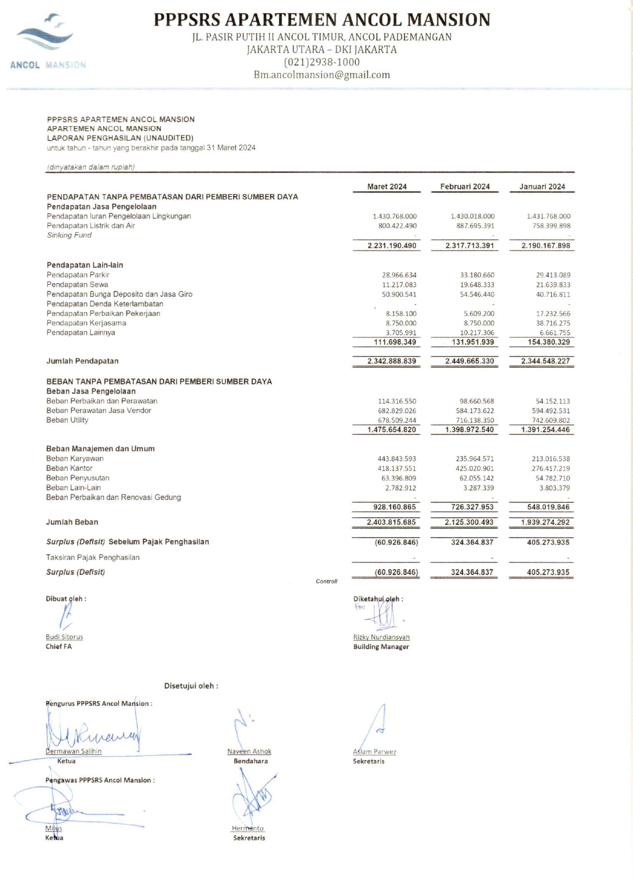 Laporan Keuangan Tahun 2024 Jan-Mar (Unaudited)