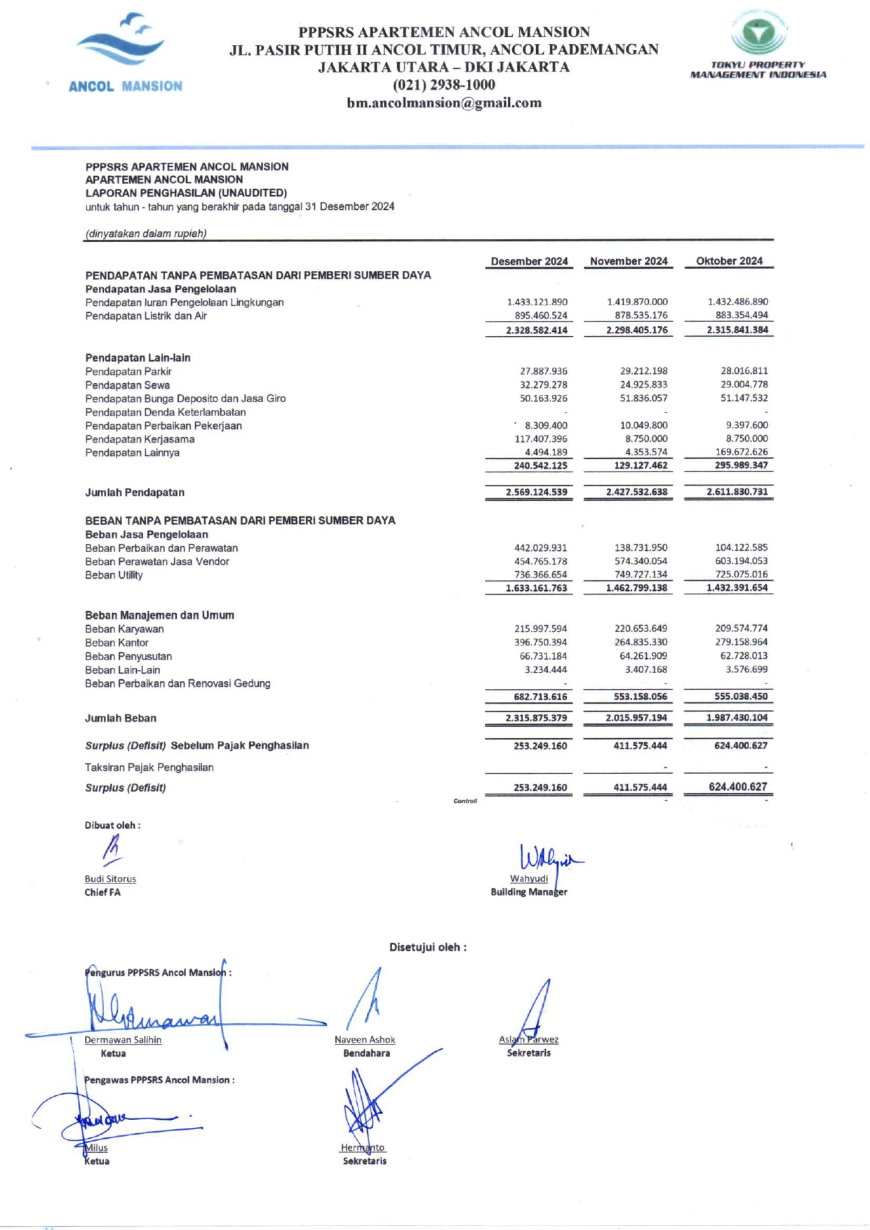 Laporan Keuangan Tahun 2024 Oktober-Desember (Unaudited)