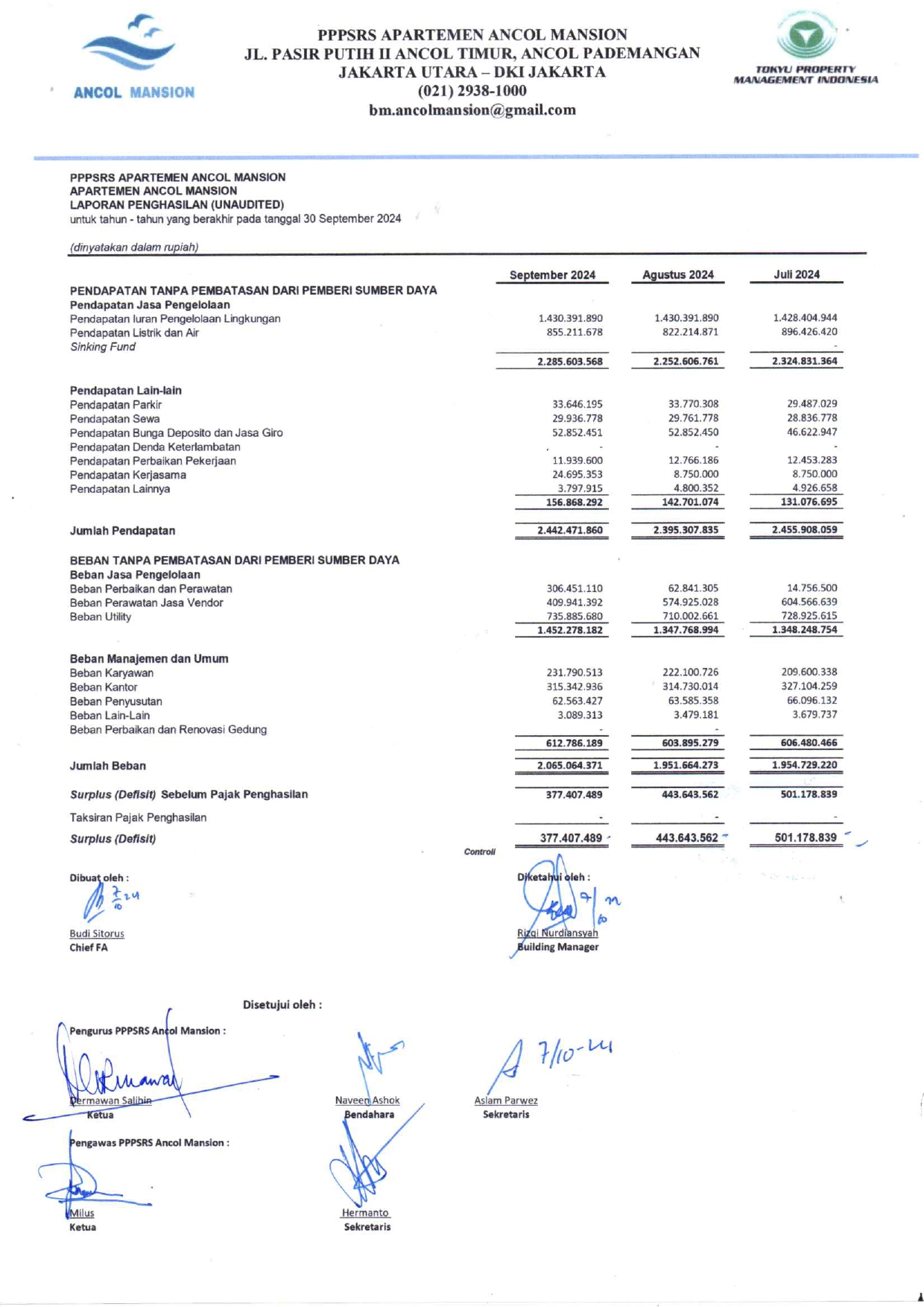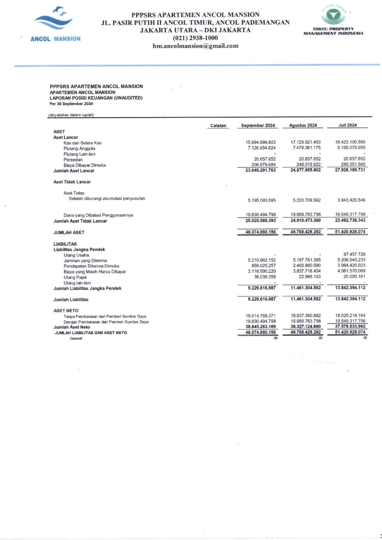 Laporan Keuangan Tahun 2024 Juli-September (Unaudited)