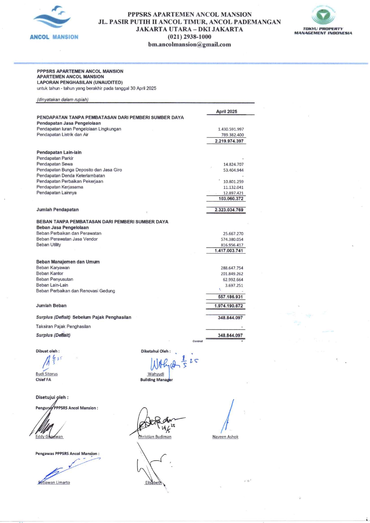 Laporan Keuangan Tahun 2025 April (Unaudited)