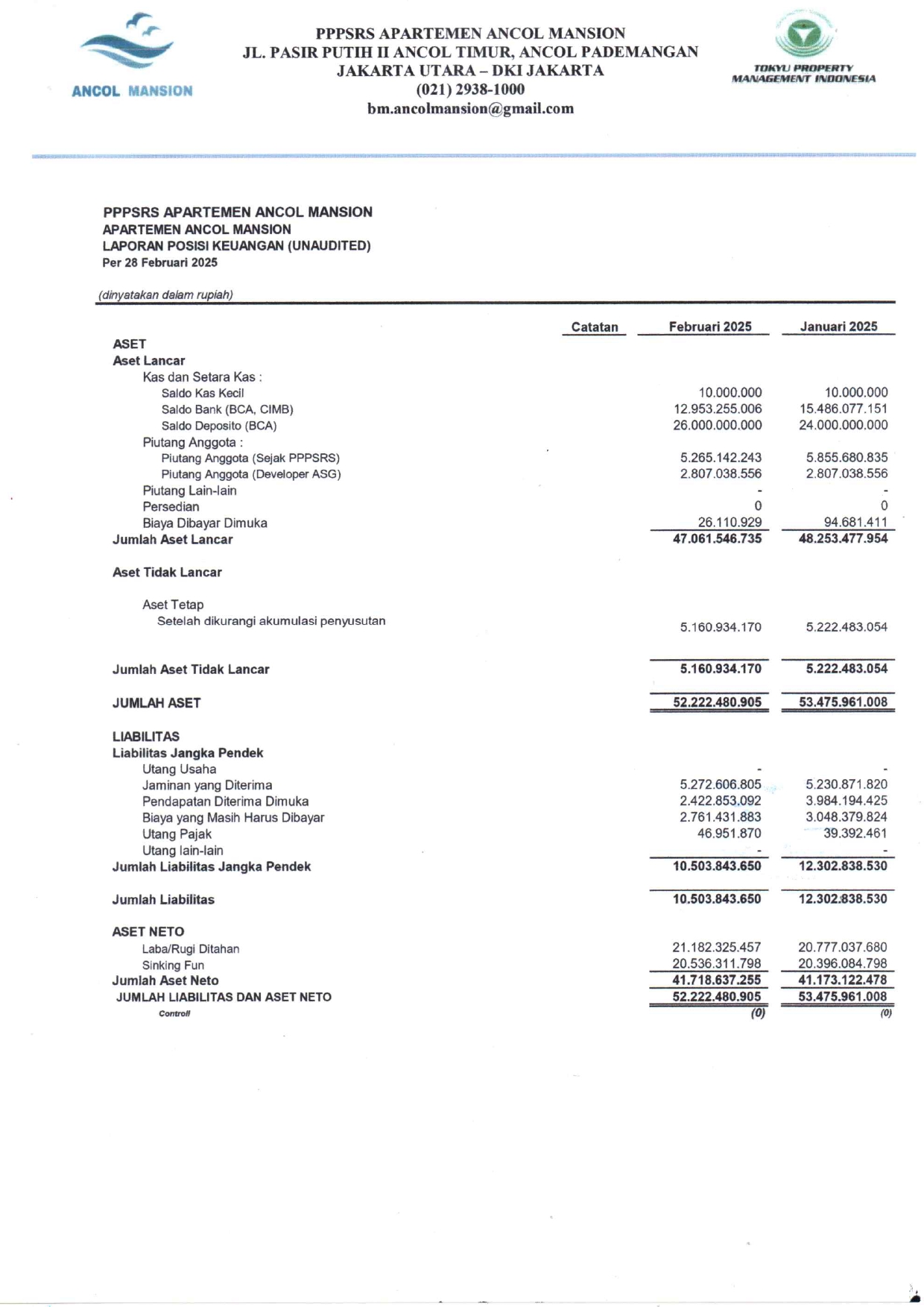 Laporan Keuangan Tahun 2025 Februari (Unaudited)
