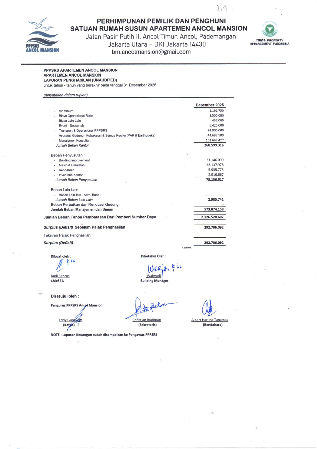 Laporan Keuangan Tahun 2025 Desember (Unaudited)