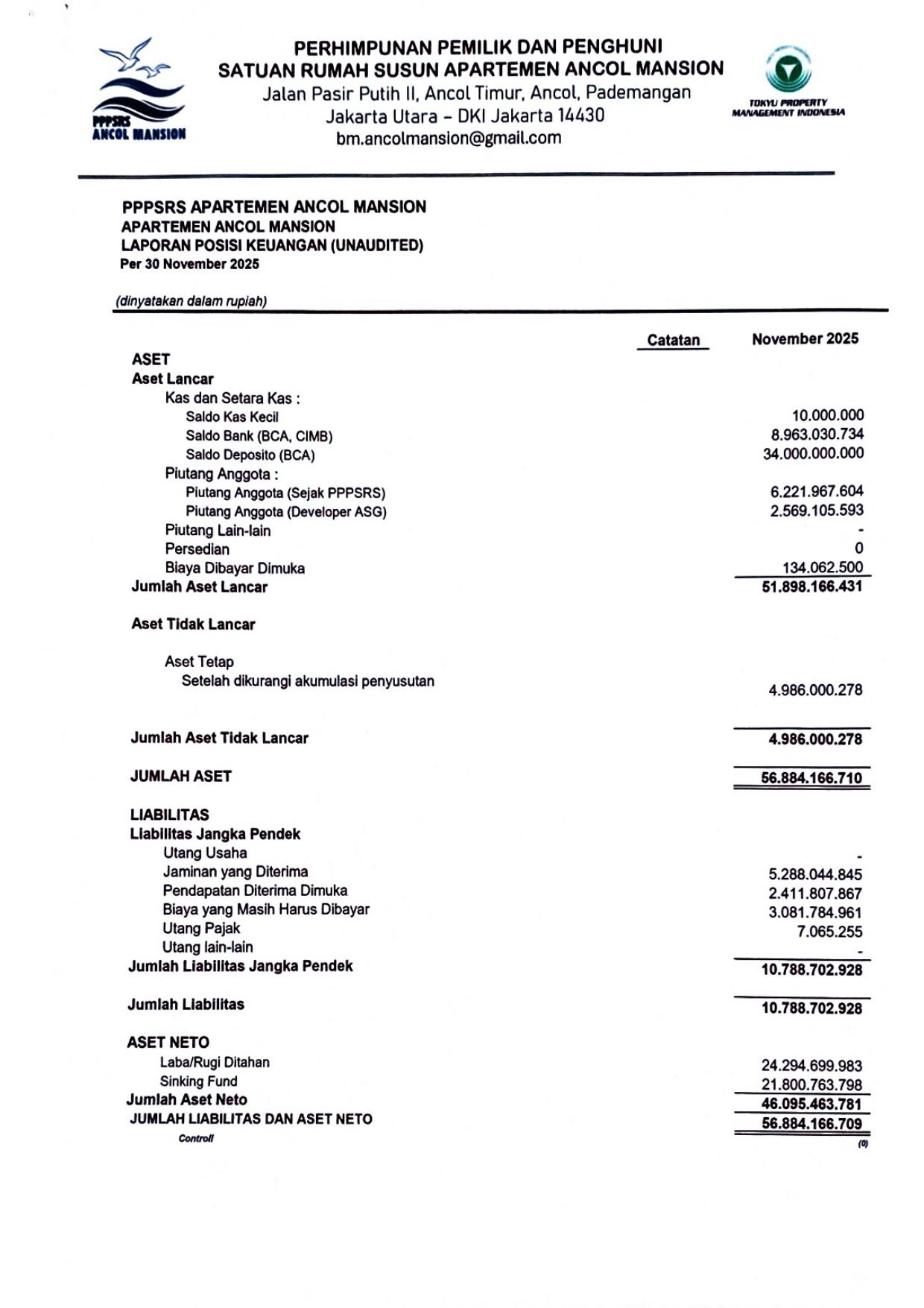 Laporan Keuangan Tahun 2025 November (Unaudited)