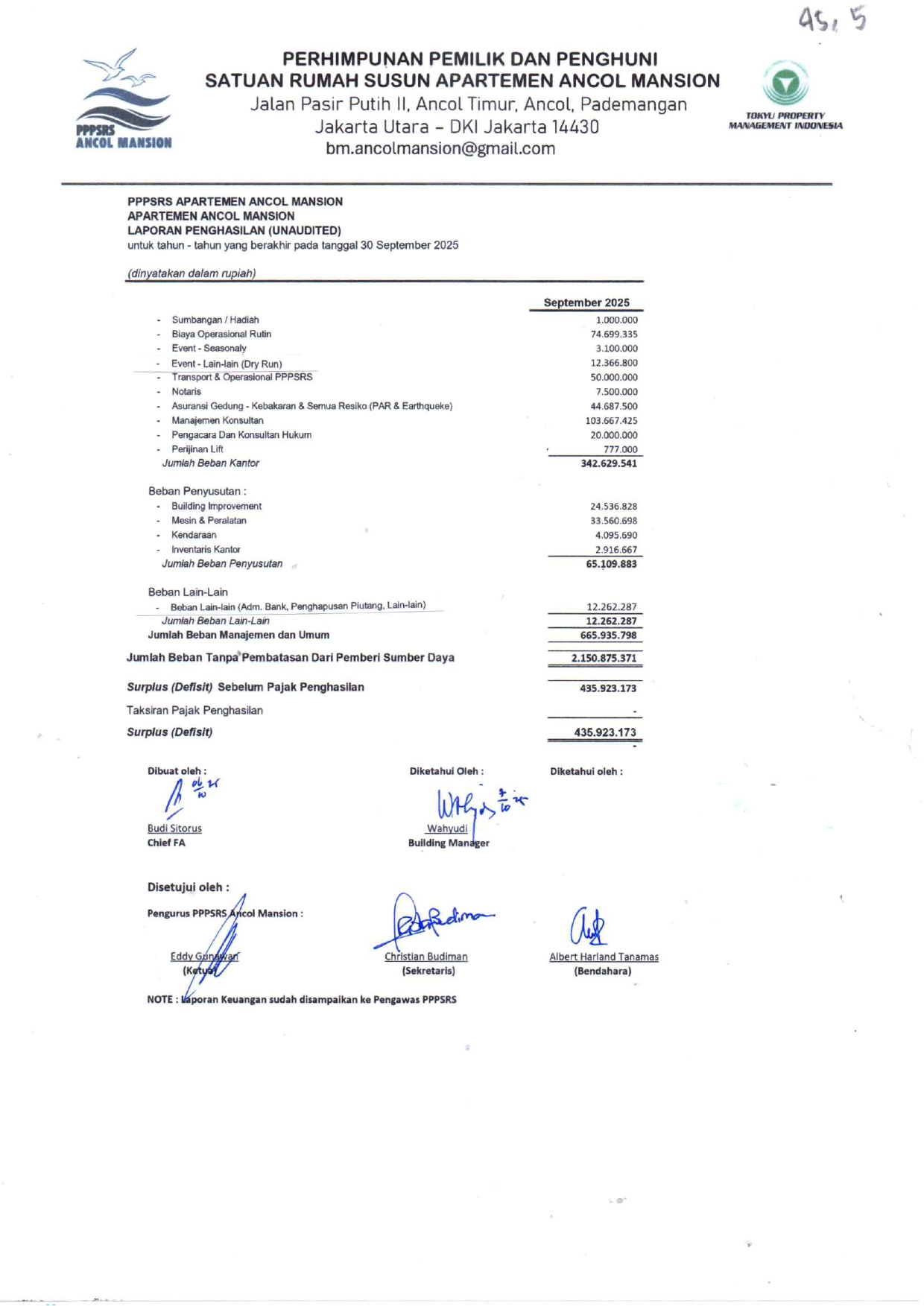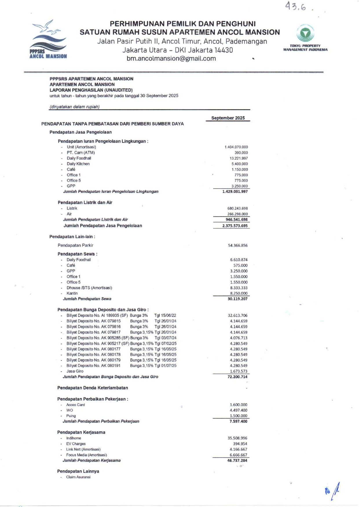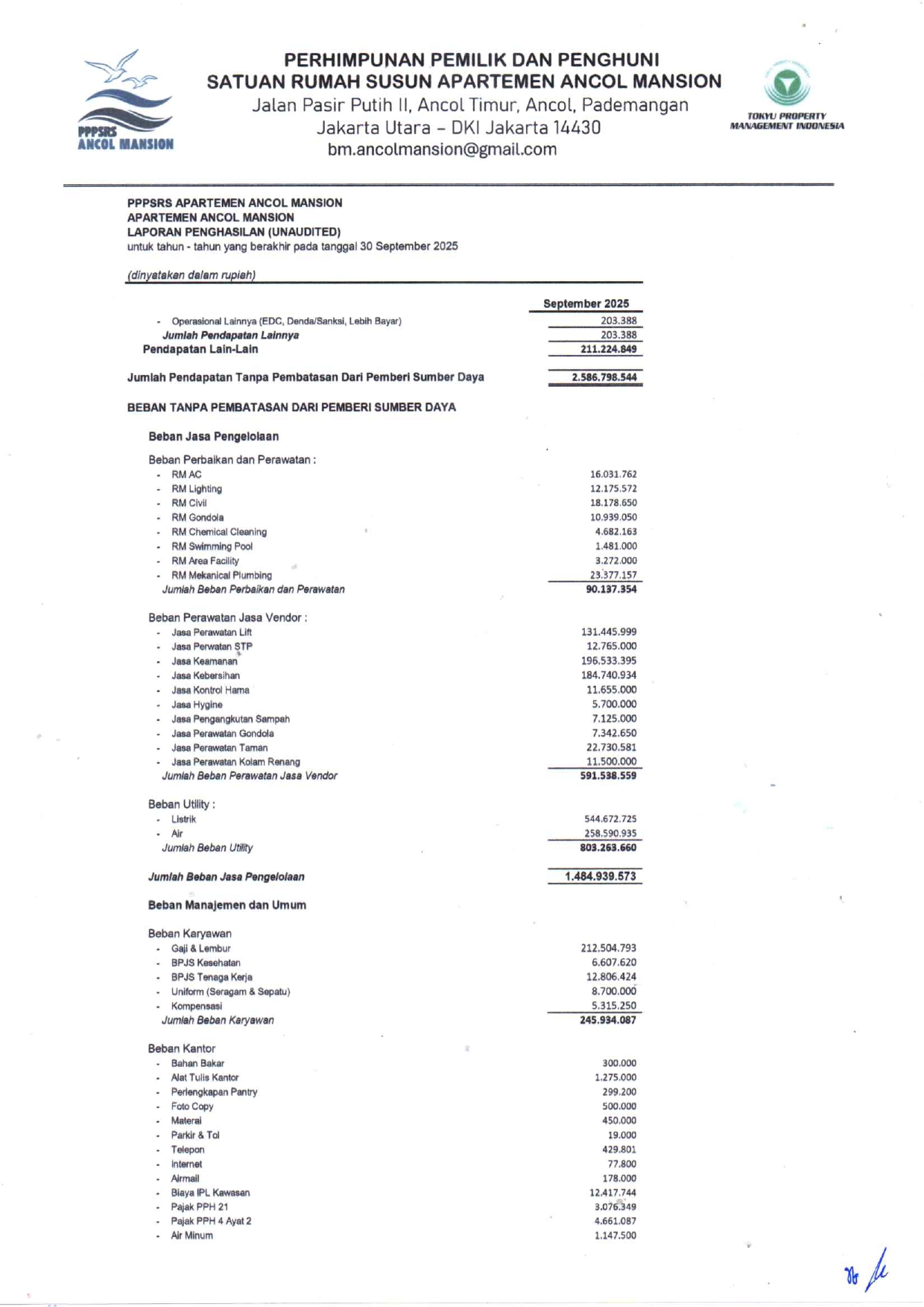 Laporan Keuangan Tahun 2025 September (Unaudited)