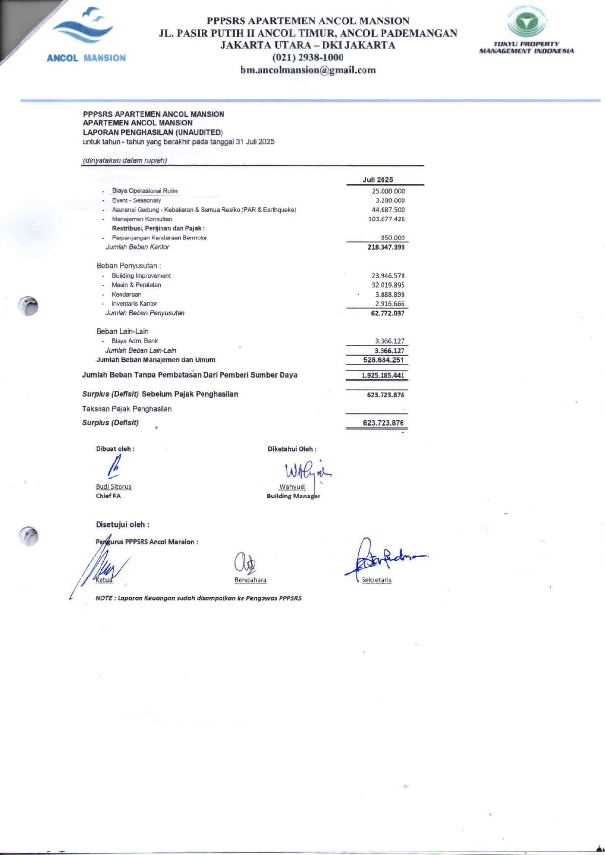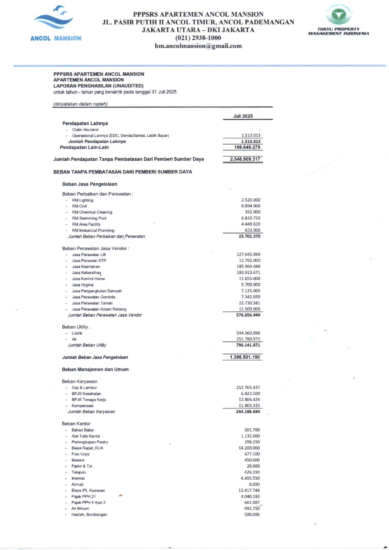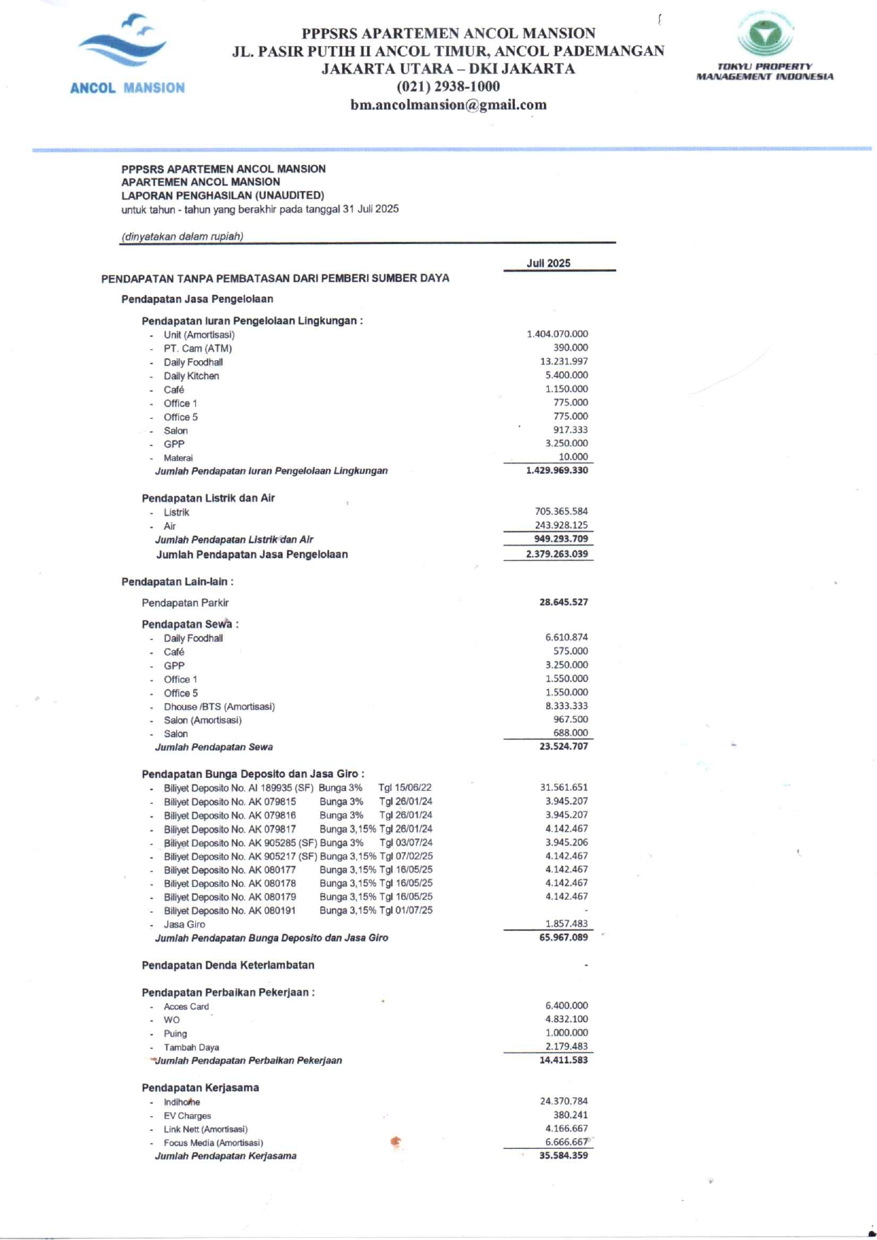 Laporan Keuangan Tahun 2025 Juli (Unaudited)
